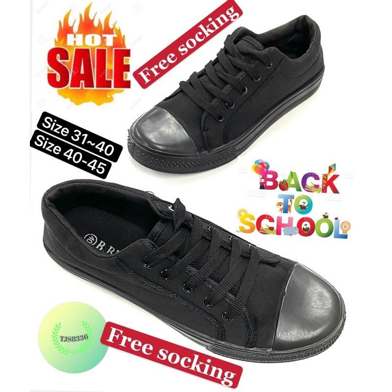 Hot Sales Brand B Best Kasut Sekolah Hitam Tali Murah School Black Shoe Free Socking W4 W5 Shopee Malaysia